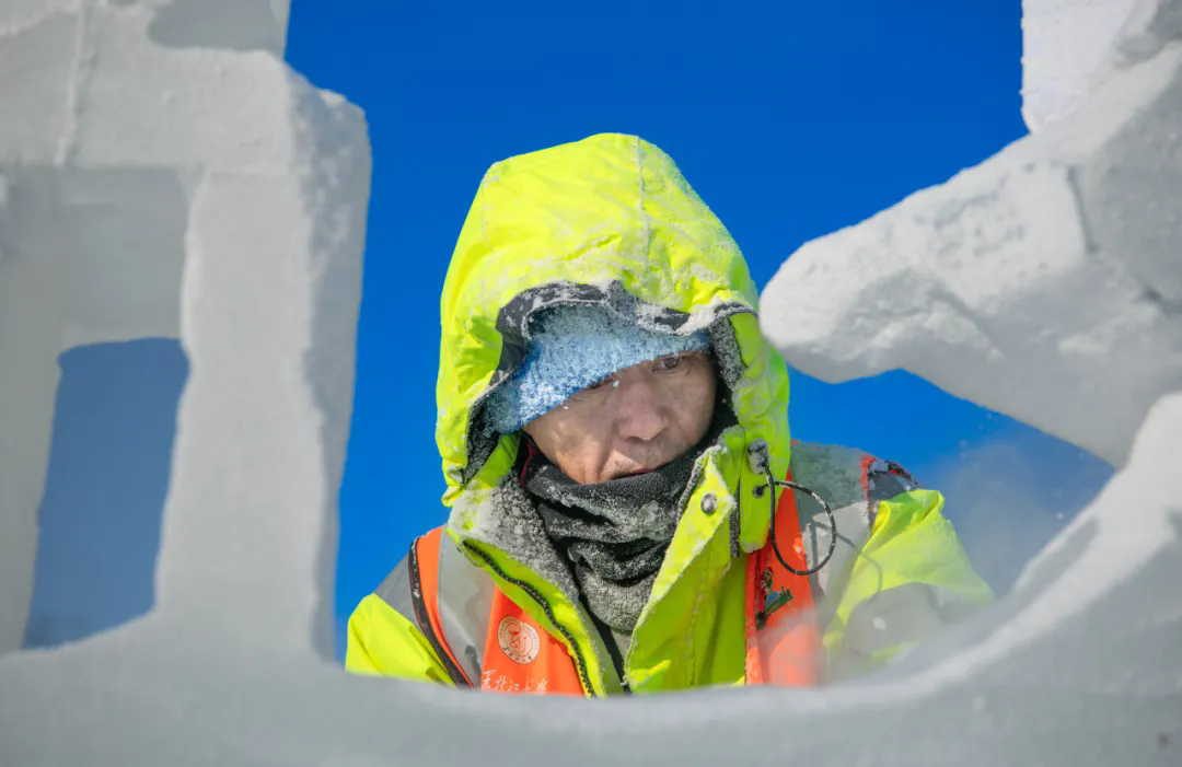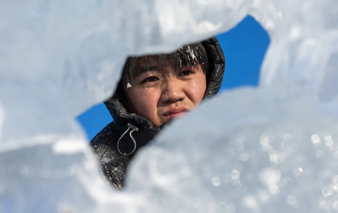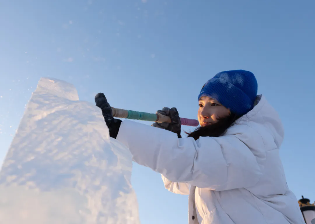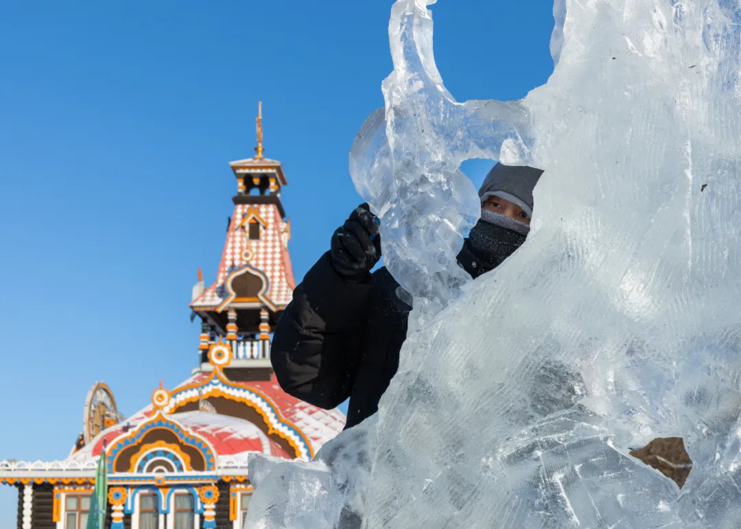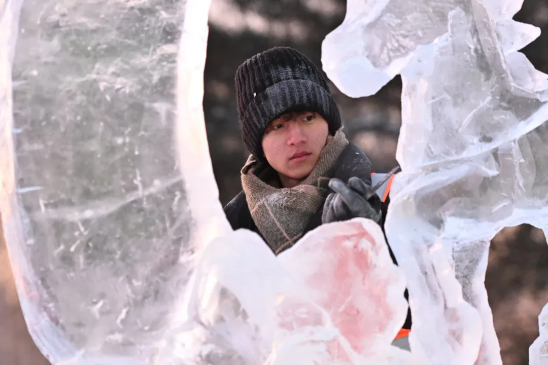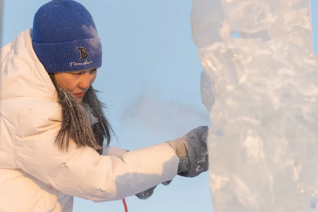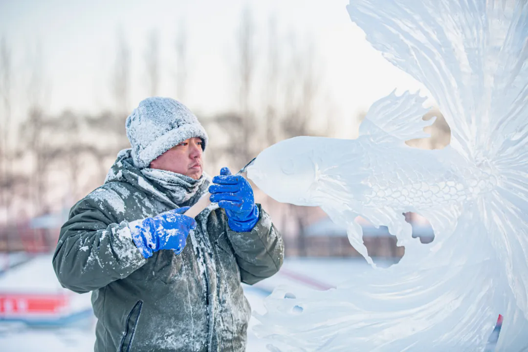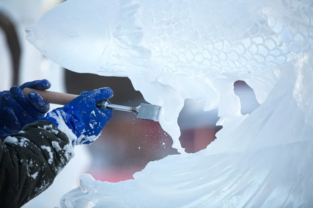 活动现场,高校师生们以冰为材、以刀为笔,匠心雕琢,将一块块晶莹冰料转化为千姿百态的冰雕作品,摄影家们不惧严寒,用镜头多维度记录冰雕制作的全过程。无论是雕刻者专注的神情、冰屑飞舞的瞬间,还是作品逐渐成型的惊艳画面,都被一一定格在影像之中,充分展现了冰雪艺术创作人文匠心与冰雪美学相融共生的鲜活场景。