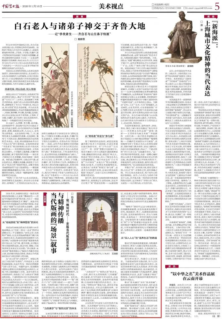 拓展“版画生态”,强化公共美育与传播创新。推动版画与文旅、文创、公共空间艺术的深度融合,使其从美术馆的展墙走向日常生活场景,实现从“深入人心”到“滋养生活”的跨越。