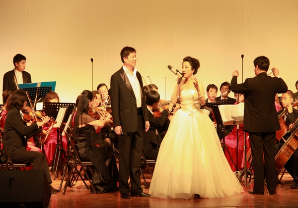担任此次演出任务的鹤城爱乐交响乐团,成立于2007年年底,是由机关干部、教师、工人和自由职业者组成的业余团体组织,成员达120人,其中,最小的演奏者只有14岁,最大的已经78岁高龄。乐团成立以来克服各种困难,每周坚持两次排练,成功演奏了《贝多芬命运交响曲》、《梁祝》、《拉德斯基进行曲》等多部中外名曲,先后参加了关东文化节、绿博会、市迎新春音乐会、“江桥抗战”研讨会等大型演出近20场次,受到各级领导和观众的好评。