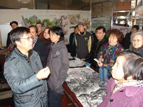 在辅导现场,老年美术爱好者们把自己创作的作品挂在墙上,三位画家分组为大家的作品一一进行点评,从构图、用笔、着墨、题款、用印以及创作技巧、方向进行了认真细致的讲解,并回答了老年美术爱好者在创作中遇到的问题。三位画家的指导让老年美术爱好者受益匪浅,大家表示,本次辅导解决了多年困扰自己的创作难题,明确了创作方向,非常感谢专业画家的无私奉献,希望今后能多来指导。