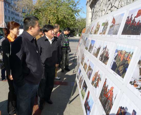 2013年9月21日,佳木斯摄影家协会在松花江大塔边举办2013年“众志成城抗洪水、万众一心保家园”纪实摄影作品展。