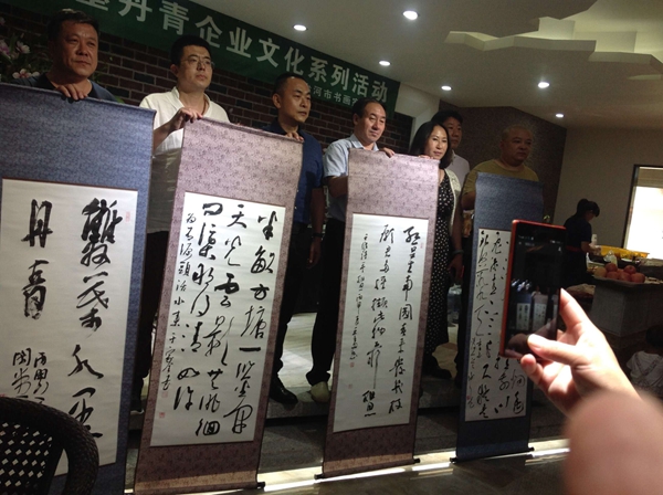 书画家挥毫泼墨,创作书画精品40余幅,大家在优美的古筝演奏旋律中,在欣赏书画创作过程中,体验到了博大精深的中华传统文化魅力。此次交流活动为文艺走进企业拉开序幕。企业文化是企业发展的灵魂,七台河市文艺界一直关注家乡企业的发展,市文联将与全市艺术家一道,为企业文化助力、为企业发展助力,弘扬七台河精神、发展文学艺术事业,搭建企业与文化共同发展的平台。