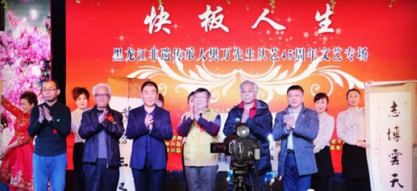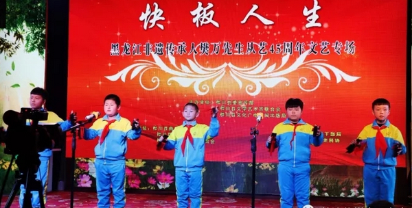 12月3日上午,中国李氏快板第三代传人、黑龙江省非物质文化遗产(快板)传承人、著名快板书表演艺术家樊万先生从艺45周年《快板人生》专场演出在桦川县花园大酒店欢乐上演。樊先生师徒精湛的表演及孩子们有模有样的演出,给现场观众带来艺术享受与欢乐。