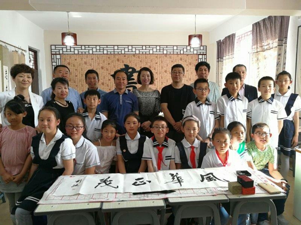 5月22日下午,在市书协主席尹寿坤的带领下,市书协副主席兼秘书长刘波、市书协副主席赵书中、李希顺、龚世明等一行五人来到了南山区逸夫小学。尹寿坤等书法家们首先指导学校教师和同学们学习书法过程中存在的缺点和不足,之后,尹寿坤主席向同学们传授了学习书法艺术过程中应注意的事项及继承发扬中华传统书法文化的重要性,鼓励同学们从小“写好中国字,做好中国人”,给同学们上了一堂生动的书法教育课。然后几位书法家现场挥毫拨墨,为师生展示了书法艺术的魅力,给逸夫小学师生留下了一批珍贵的墨宝。