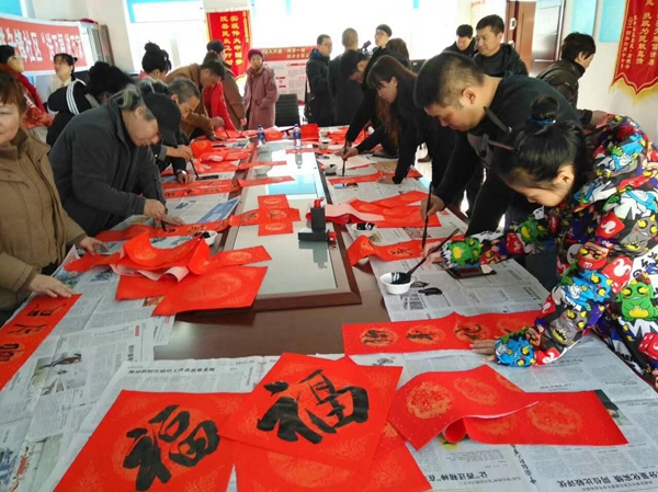 为践行习近平总书记“艺术服务于人民”的宗旨,在春节即将来临之际,佳木斯市书法家协会“红色文艺轻骑兵”送万福进万家文艺惠民活动拉开了序幕。市书法家协会的书法家们自2018年1月末至今,先后来到建设社区、先锋社区、新华书店、大来镇庆丰村、好视力眼镜店、长青乡等多地,义务为群众书写春联,受到广大人民群众的热烈欢迎和广泛好评。参加活动的书法家共计60余人次,书写春联总计1000余幅,为全市百姓欢度春节增添了喜庆气氛,成为佳木斯文艺惠民活动中一道靓丽的风景线。