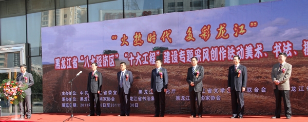2011年9月26日,“火热时代 多彩龙江”——黑龙江省“八大经济区”、“十大工程”建设专题采风创作活动美术、书法、摄影作品展览在哈尔滨国际会展中心隆重开幕。展览由中共黑龙江省委宣传部、黑龙江省文化厅、黑龙江省文学艺术界联合会、黑龙江省作家协会共同主办,省美术家协会、省书法家协会、省摄影家协会承办。省人大秘书长胡世英,省政协教科文卫体委员会主任潘春良,省文联主席傅道彬,省作协党组书记赵毅,省文化厅副厅长綦军,省文联副主席、省美协主席吴团良等领导,以及省内美术、书法、摄影艺术家代表和美术、书法、摄影爱好者,省内新闻界人士、现场观众等百余人参加了开幕式。