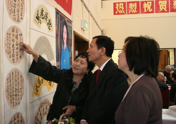 英国中文教育促进会会长太平绅士伍善雄,泰利华人社区中心执行董事林小翘,以及英国米德尔斯堡市政府官员及企业家代表出席开幕式并剪彩。米德尔斯堡市各界人士两百多人出席开幕式并参观展出作品。王凯霞应邀为泰利华人社区中心题词。