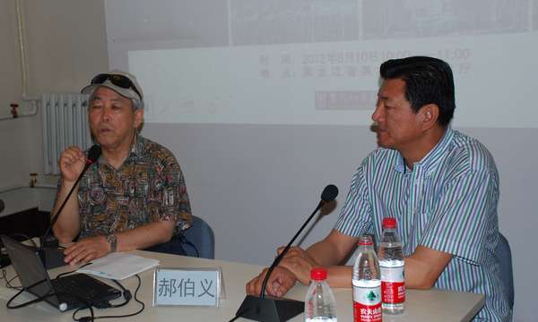 郝伯义先生在张玉杰馆长陪同下,做专题讲座