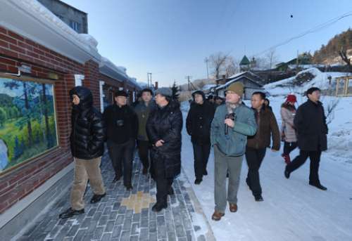 为给画家创作激发灵感、提供素材,创作反映牡丹江地域特色的美术作品,慰问团一行在牡丹江参观了革命烈士纪念馆,并到雪乡进行了创作采风活动,实地踏查牡丹江红色遗迹、历史遗址以及城市建设,感受东北地区的红色文化、历史文化、风土人情。在牡丹江活动期间,慰问团还向八女投江革命烈士纪念馆、杨子荣革命烈士纪念馆、中国美术家协会镜泊湖写生创作基地等机构赠送了随行画家创作的大幅美术作品,向牡丹江市美术爱好者以及农民群众赠送了美术图书、挂历等慰问品。