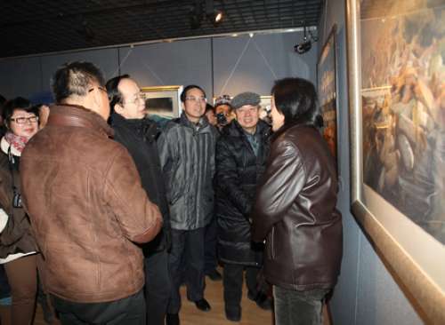 在牡丹江活动期间,慰问团一行观看了“牡丹江市首届美术双年展”。这个画展是牡丹江历史上规模最大、质量最高、最具权威性和影响力的一次美术展览,共展出120多件牡丹江市本地作者创作的油画、中国画、水彩画、漆画、冰雪山水画以及雕塑作品,是从近600件作品遴选出的优秀作品。慰问团随行的画家在现场为本地作者进行了创作点评和辅导,牡丹江许多美术作者都是第一次面对面的与高层次的画家交流,让他们受益匪浅,收获颇丰,有效地促进了基层美术工作者创作水平的提高。