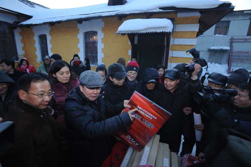 随后,慰问团一行到海林市横道河子镇参加了“中国•横道河子油画村”开村仪式,参观了横道河子中东铁路建筑群遗址和油画一条街。在横道河子镇,画家们挥毫泼墨,现场为当地农民群众写福字、春联,送去了新春祝福。慰问团还走访慰问了横道河子镇贫困户,送去了慰问金和慰问品,让他们感受到了党和政府的关怀。