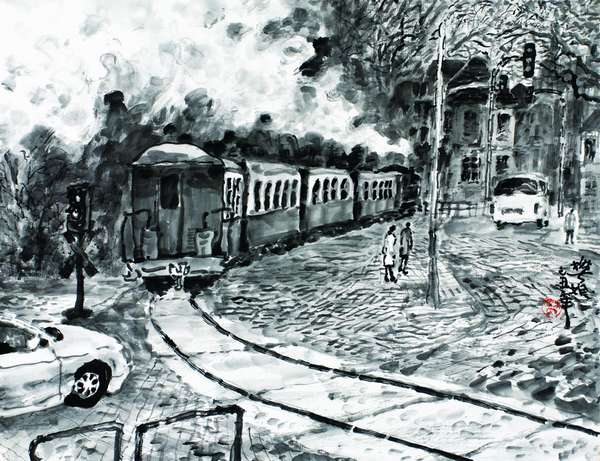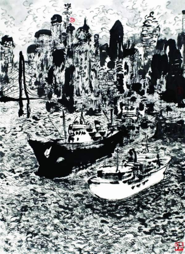 伴随着时代的变迁,城市化的发展给都市人提供了全新的视觉经验。艺术家的视角也随之发生改变。无论是从题材上,还是从表现手法上,水墨画在新的历史时期开拓了新空间,图式和绘画语言上都出现了新的可能性。樊枫的作品跳出了传统山水画中农耕型视觉经验一味地对自然山水描绘的局限,将视角投射到一种现代化的城市景象上来,汽车、火车、轮船、飞机,都成了他描绘的对象,这是在中国画领域很少见的。樊枫以逸笔书写城市的形态,也与中国画传统中对建筑物的描绘多为工笔作品拉开了距离。樊枫的“都市水墨”在传统水墨的分类之外,用水墨抒写都市情怀,这是一种人文景观的转向,也是一种形式上、内容上的探索,为当代多元审美的需求开拓了更多空间。