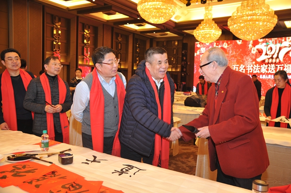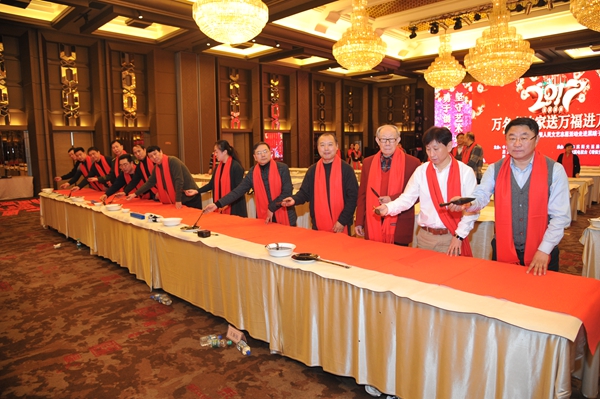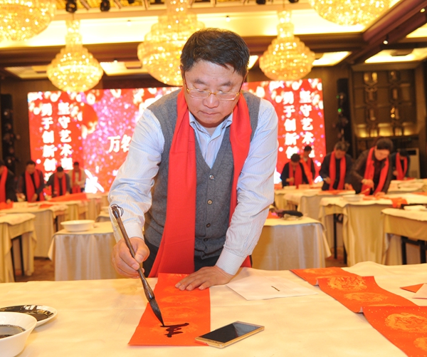 启动仪式后,书法家们铺纸研墨,即席挥毫,并通过百福送春写长卷、吉祥汤圆、喜迎团圆年等互动环节,营造出喜气洋洋迎新年的热闹景象。出席此次启动仪式的有:省文联党组成员、副主席,省书协主席,中国书协理事张戈,中国书协理事、省书协驻会副主席兼秘书长胡志平,省书协老年专业委员会秘书长王新民,中国书协理事、省书协副主席洪铁军、李文宝,省书协副主席芦海娇、陈宇龙、高杨、高国庆、蔡兴洲,省书法活动中心副主任王晓凤、石正军,省书法界人士张成生、谢铁军、高弟、王大明、宋卫东、孙国辉、李长龙、丁长富、于洪波、于海波、王林平、王显君、艾立辉、曲庆伟、关丽华、李慧、迟文斌、封安熙、荀牧、钱晓慧、黄涛、穆国懿、王晓彦、秦嘉彬、赵莹、梁帅、闫恩双、王刚、周亮、宁玉华、戴枫、赵雯共四十余位书法家。