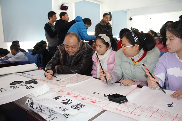 中国书协理事、省书协驻会副主席兼秘书长胡志平为抚远市的书法教师们进行书法教学