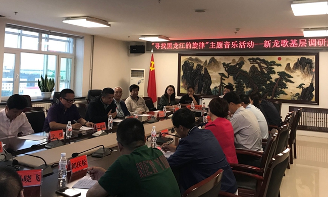 采风团先后来到黑河市爱辉区、逊克县、孙吴县、大兴安岭地区漠河县、北极村、加格达奇区等地。在逊克县召开了新龙歌创作研讨会,会议由黑河市文联主席车义主持。会上傅道彬主席表示自己已经被黑龙江奔腾的气势征服,希望艺术家们能够让我们的“龙歌”形成具体风格,希望文艺工作者能够更加有自信。逊克县委常委、逊克县宣传部长王晓华表示听了道彬主席的讲话后觉得信心满满,由于边陲小县城走出去的机会太少,希望能有首歌把逊克翻天覆地的变化写出来。词作家胡小石表示40多年前来过这里,如今又来到这里,感觉变化很大,也呼吁大家下点功夫,争取把有感受的东西都形成作品。《萧红》编剧乙福海说:“文艺工作者创作出的作品不仅要服务于人民,也要作为地方的名片,服务于地方的经济发展。”省音协副主席王明喜希望大家能够适应时代需求,创作出更多扎根人民、来源于生活的艺术精品。东北农大于洋院长认为歌唱家也应该深入生活,与词曲作家多交流才能更好的演绎作品。采风团的其他成员都分别发言,表达对黑龙江大美河山的热爱,并有信心写出反应新时代、新特征的优秀“新龙歌”作品。