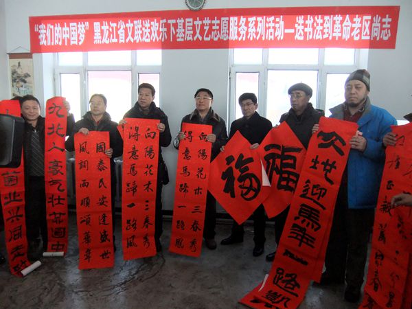 2014年1月21日,“我们的中国梦”•黑龙江省文联“送欢乐下基层”文艺志愿服务系列活动之一----送书法到革命老区活动在尚志市乌吉密乡九北村举行。