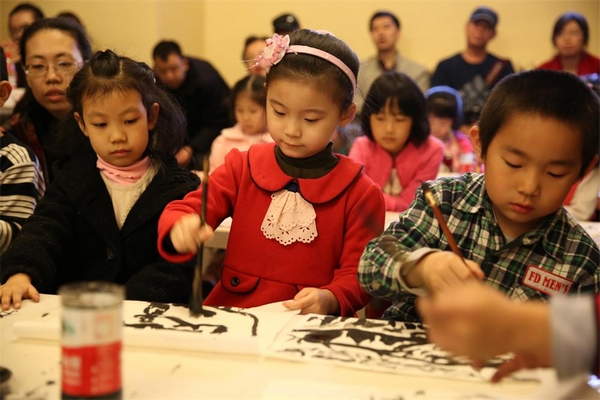 在活动中,参加者不仅对书法这一民族艺术的代表门类有了更加清晰和深刻的认识,而且还现场铺纸蘸墨,练习书法,得到了书法家的悉心指导。老师和家长认为,带领孩子参加这样的活动,对完善孩子的中国传统文化教育非常有益,同时也加强了人们传承与发展中华民族传统文化艺术的意识与责任感。