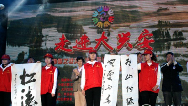 11月15日晚,中国文联文艺志愿服务团走进大兴安岭“送欢乐下基层”大型慰问演出现场,一曲洋溢着大森林气息的歌舞表演《高高的兴安岭》激昂开篇。以“走进大兴安岭”为主题,晚会从“新时代•新号角”“中国梦•绿色梦”两部分切入,将连日来在这里举办的文艺志愿服务活动推上了最高潮。中国文联党组书记、副主席赵实,中国文联党组成员、副主席李前光,中国文联副主席刘兰芳,国家林业局党组成员、中央纪委驻国家林业局纪检组组长陈述贤,以及陈洪武、冯双白、廖恳、傅道彬、计世伟、张戈、吴团良、肖建春等中国文联、国家林业局、黑龙江省、大兴安岭地区等有关方面领导与当地观众一起观看了演出。