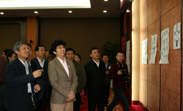 11月15日下午,中国文联党组书记、副主席赵实,中国文联党组成员、副主席李前光来到中国文艺志愿服务书画交流辅导现场,观看当地书画爱好者创作的作品