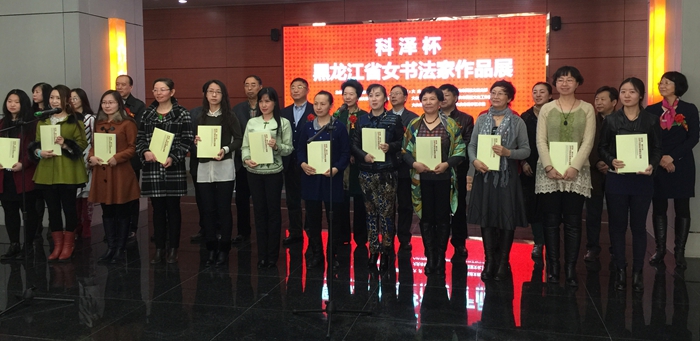 开幕式上,受张戈先生委托,胡志平代表省书协致辞,王璟代表大庆市文联致欢迎词,刘淑媛代表承办方致辞。开幕式由王卉主持。主席台领导及嘉宾向女作者代表赠送了“科泽杯”黑龙江省女书法家作品展作品集。