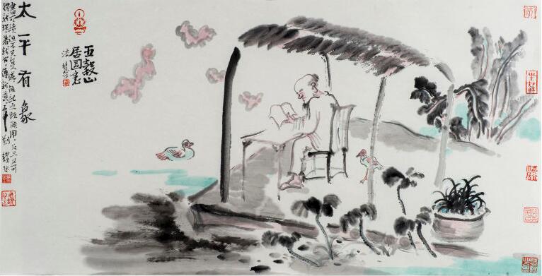 本次画展展出的四十余幅作品,集中展示了刘钻的最新创作成果。这些作品以“太平有象”为主题,为我们呈现了诗书画融会贯通、完美结合的审美画卷,在线条、笔墨、色彩的虚实之间,有无之中,实现了现实的“理想化”或理想的“现实化”转换,引领我们进入了一个关于心理、关于精神、关于形而上的海阔天空的境界。其作品中蕴含丰厚的文化积淀和质朴的家园情怀,及由此产生的气质和意蕴让观众眷恋思怀、流连感叹。