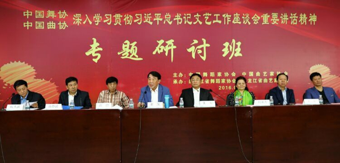 9月19日至9月23日,由中国舞蹈家协会、中国曲艺家协会、黑龙江省文联主办,黑龙江省舞蹈家协会、黑龙江省曲艺家协会承办的中国舞协•中国曲协深入学习贯彻习近平总书记文艺工作座谈会重要讲话精神专题研讨班在哈尔滨市成功举办。此次研讨班是根据中宣部等六部门联合印发的《2016-2017年全国文艺骨干和管理干部培训工作规划》要求和中国文联九届八次全委会工作部署,组织全省的中国舞协和中国曲协会员进行的为期五天的深入学习与讨论。