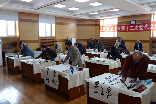 为了迎接第十二次党代会胜利召开,营造喜庆热烈的文化舆论氛围,4月25日,由省文联主办、省美术家协会、省书法家协会承办的迎庆黑龙江省第十二次党代会胜利召开书画名家笔会在哈尔滨举办。