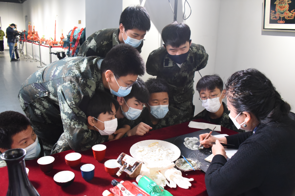 民间文艺志愿者为学生们介绍漆艺制作工艺