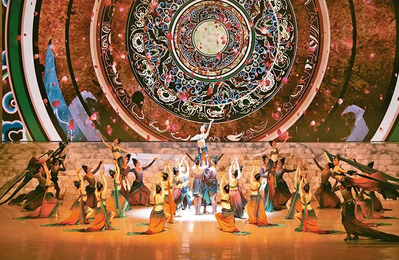 党的十八大以来,广大文艺工作者与党同心同德、与人民同向同行,围绕中心、服务大局,在文艺创作、文艺活动、文艺惠民等方面作出积极贡献、取得丰硕成果。图为2022年9月1日第十三届中国艺术节开幕式上,演员表演芭蕾《敦煌·飞天》。 新华社记者 陈钟昊/摄