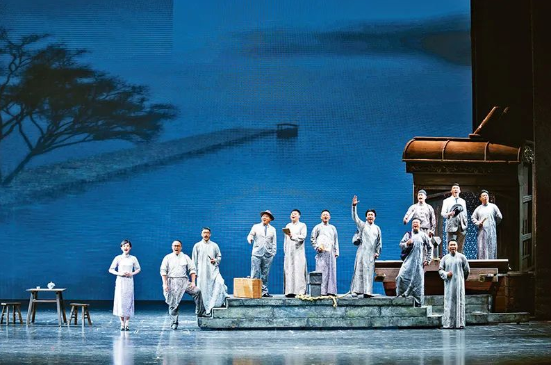 党的十八大以来,广大文艺工作者紧紧围绕中华民族伟大复兴时代主题开展文艺创作,推出一大批讴歌党、讴歌祖国、讴歌人民、讴歌英雄的精品力作。图为浙江演艺集团、浙江交响乐团、浙江音乐学院等联合演出的歌剧《红船》。 人民画报社供图 刘海栋/摄