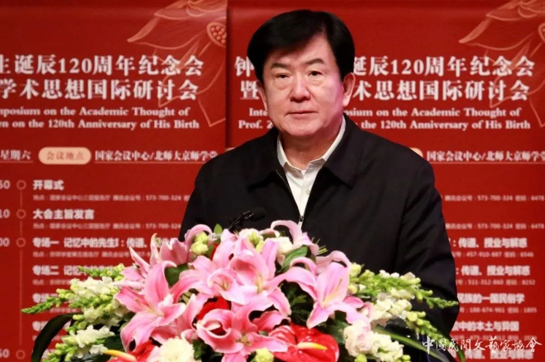 草木蔓发,春山可望,今天我们在此集会,纪念我国民间文艺界的学术巨匠钟敬文先生诞辰120周年,召开先生的学术思想国际研讨会,表达对先生的无限缅怀和敬重之情,并从先生毕生为之奋斗的中国民间文艺事业中汲取智慧和力量,对于传承和弘扬中华优秀传统文化、积极推进中国式现代化、构建人类命运共同体的宏伟事业,具有十分宝贵的价值。