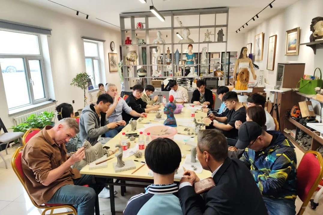 当日9时,由省美协邀请,来自俄罗斯、黑山共和国和蒙古国的3位国际雕塑艺术大师走进课堂,为哈职院艺术设计学院的学生们讲授冰雪创意设计构成知识和立体造型技法,师生们共同创作以“冰雪向未来”为主题的雕塑小稿,通过艺术创作实践进行文化交流。14时,“首届哈职杯国际冰雪文化艺术论坛”在哈尔滨职业技术学院大学生创业学院举办。论坛上,国际冰雪艺术家代表,来自俄罗斯莫斯科的索博列夫·米哈伊尔表示,中国与俄罗斯的各项合作都在持续推动,他希望可以通过冰雪和创意设计的文化交流,相互学习、共同进步。黑山共和国著名雕塑艺术家卢卡·拉多耶维奇以及蒙古国雕塑家协会理事蒙克赫尔德内也分享了自己的创作经历和助力黑龙江冰雪创意设计发展的愿望。