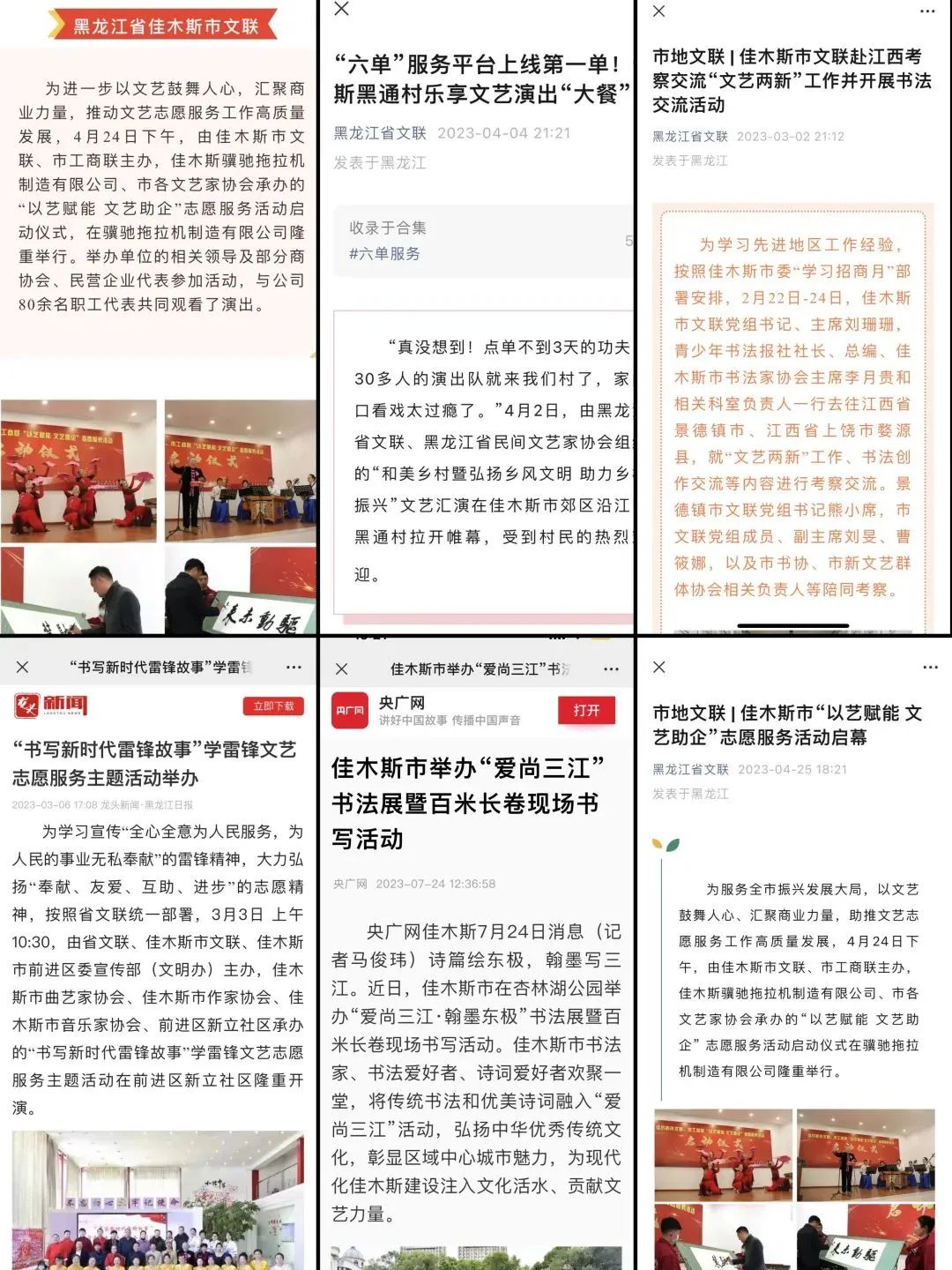精心组织破难题。积极与省文联、省级文艺家协会等上级部门联络,借鉴省级部门先进经验,精心谋划安排,承接黑龙江省文联“六单”志愿服务第一单,到佳木斯市郊区沿江乡黑通村进行演出;承接省文联2023年“新春文艺演出志愿服务活动”,为基层群众表演相声、古典舞等内容丰富的文艺节目,并增加赠送书法、剪纸、文学作品等互动形式,有效破解以往文化惠民工作“我演你看”互动性不强、“演完就走”持久度不够的问题。