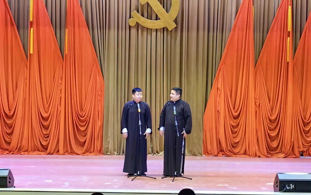 演出现场,歌曲《幸福小康》生动地诠释了习近平新时代中国特色社会主义思想在木兰大地上的生动实践和累累硕果;现代京剧《戴诺》选段“山风吹来一阵阵”让现场观众感受到了京腔京韵的多情魅力;相声《中华曲库》、快板《看升旗》、魔术《魔幻时间》为大家呈现中华优秀传统文化节目的璀璨光芒;龙江剧拉场戏《刨根问底》、二人转《看秧歌》《刘小姐出马》等富有地域特色、展现时代风貌、群众喜闻乐见的节目让观众连连叫好;整场演出在《阳光路上》的歌声中落下帷幕。