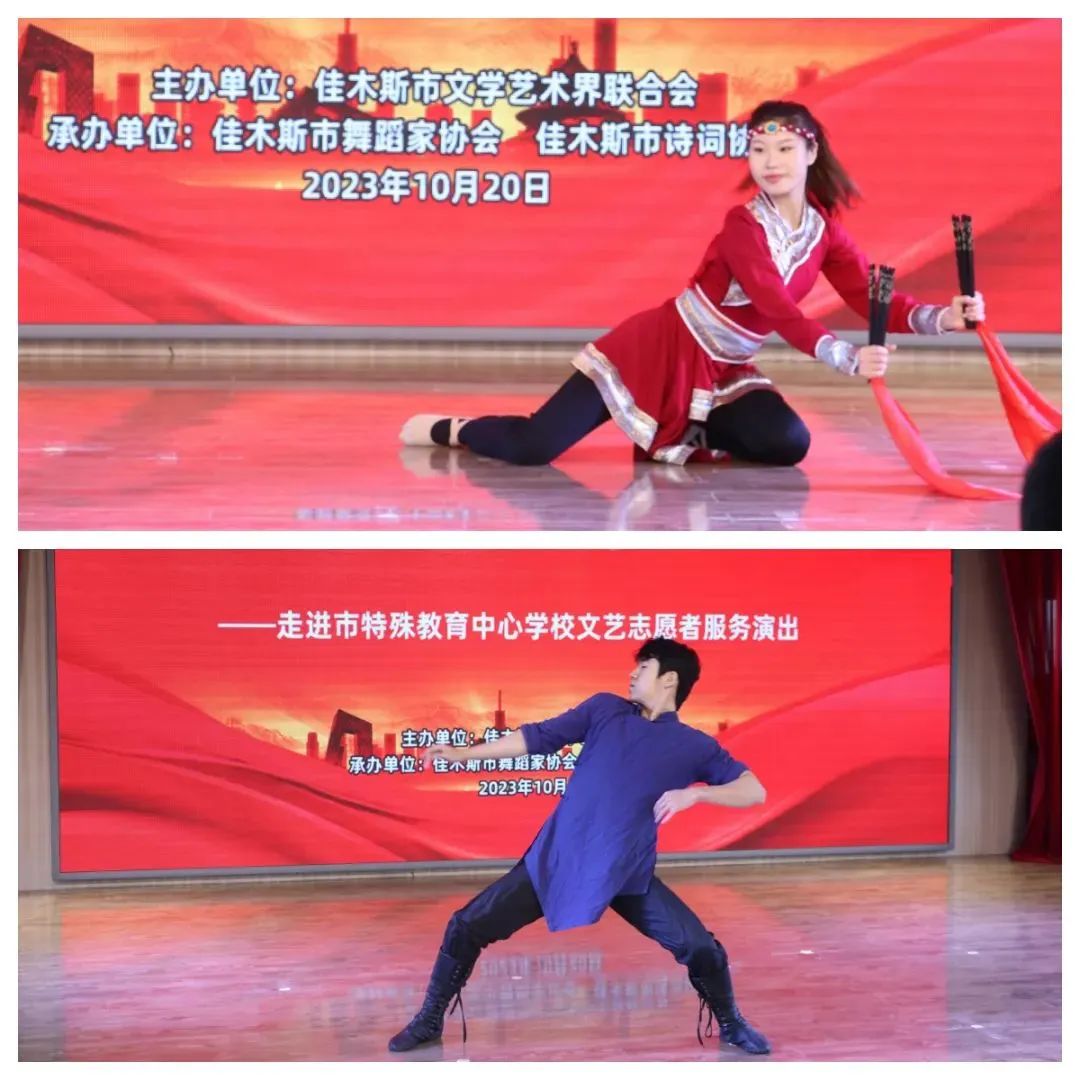 10月20日上午,佳木斯市文联组织市舞蹈家协会、市诗词协会在佳木斯市特殊教育中心学校举办了一场公益演出。文艺志愿者们通过舞蹈和诗词朗诵的形式,宣传贯彻习近平总书记在文化传承发展座谈会上的重要讲话精神,为特殊教育学校的孩子们带去文化熏陶和人文关怀。