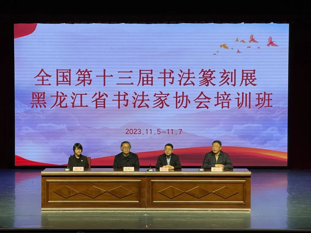 11月7日,由黑龙江省书法家协会组织的备战全国第十三届书法篆刻展培训班在哈尔滨市落下帷幕。此次培训为期三天,邀请中国文联书法艺术中心原主任、《中国书法》杂志学术委员刘恒,中国书法家协会教育委员会委员、渤海大学教授、博士生导师陈国成以及省书协部分主席团成员进行现场授课、作品点评,示范指导。来自全省各市(地)、行业书协、高校及学会的300多名书法工作者和书法爱好者参加本次培训。