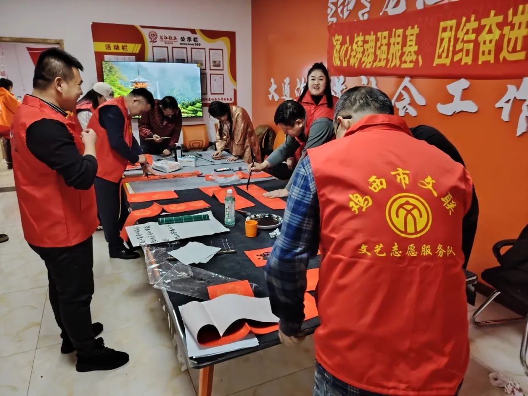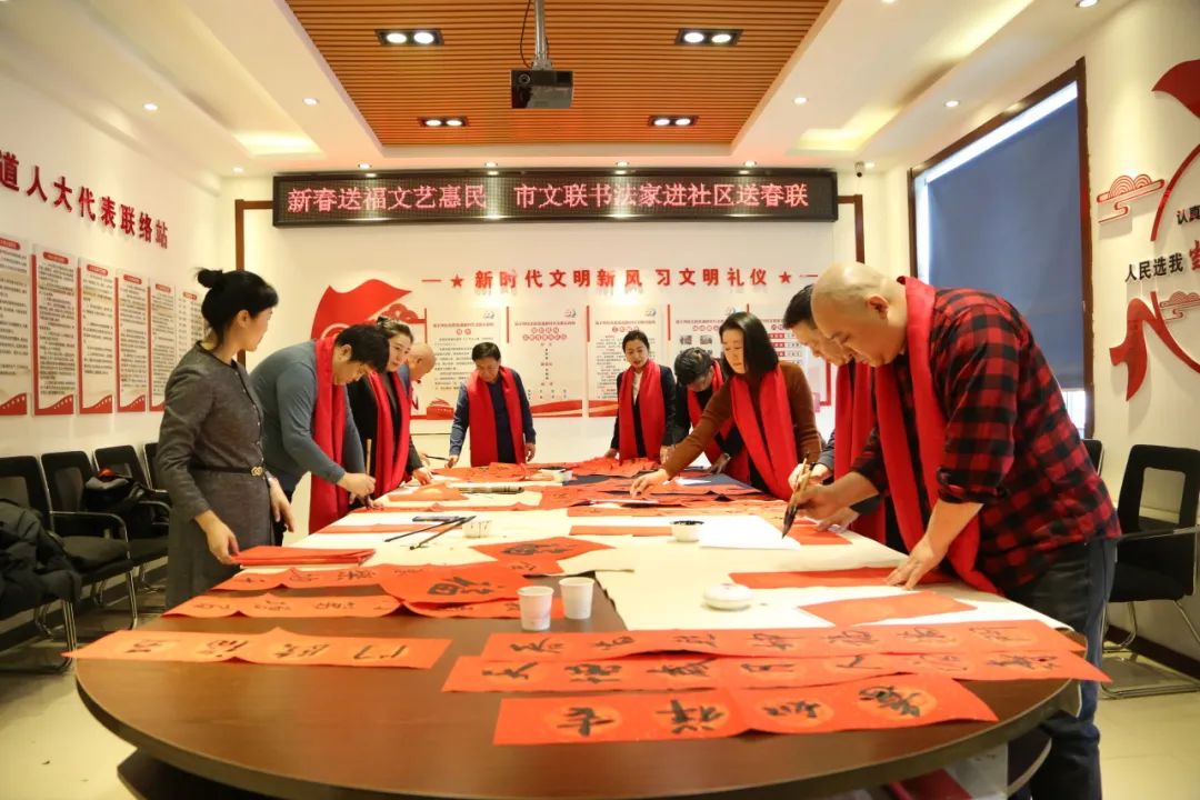 1月18日,七台河市文联组织开展的“我们的中国梦——文艺进万家”系列活动正式启动,先后深入茄子河区东胜社区、康乐社区、桃山区学府社区、哈尔滨银行、工商银行、中心河乡新时代文明实践所等社区和企业,开展“新春送福文艺惠民”文艺志愿服务活动。来自市文联书法家协会和美术家协会的文艺家们挥毫泼墨,为社区群众、企业职工书写一副副饱含浓浓年味、寓意吉祥的春联和福字,为即将到来的新春佳节增添了祥和喜庆的氛围。