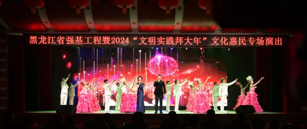 1月30日、31日,由黑龙江省委宣传部、黑龙江省文联主办的“强基工程”暨2024黑龙江省“文明实践拜大年”文明实践示范活动在哈尔滨市通河县和方正县相继开展。主办单位有关负责同志、省级协会艺术家及省演艺集团演职人员近百人参加活动。