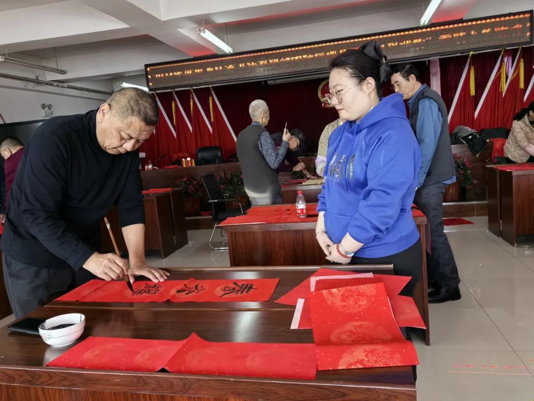 “龙腾霄汉开新宇 鹊立眉梢报福音”“国泰民安春载福 年丰人寿喜盈庭”……书法家们现场泼墨挥毫,一副副寓意吉祥的春联、一个个满载祝愿的福字新鲜“出炉”,书法爱好者们不时点评赞叹,感悟楹联文化的魅力,品味书法艺术的精妙,乡镇居民争相选取自己最中意的作品,将寄托着新年的美好祝福和愿景的“文化年货”带回家。通过举办此次文艺志愿服务活动,不仅营造了幸福祥和、温馨团结的新春氛围,更是架起一座文艺工作者与人民群众之间的桥梁,引导书法工作者面向基层一线,把优秀的艺术作品送到群众最需要的地方,让群众体会到党和政府的温暖和关怀,提升了人民群众的获得感和幸福感。