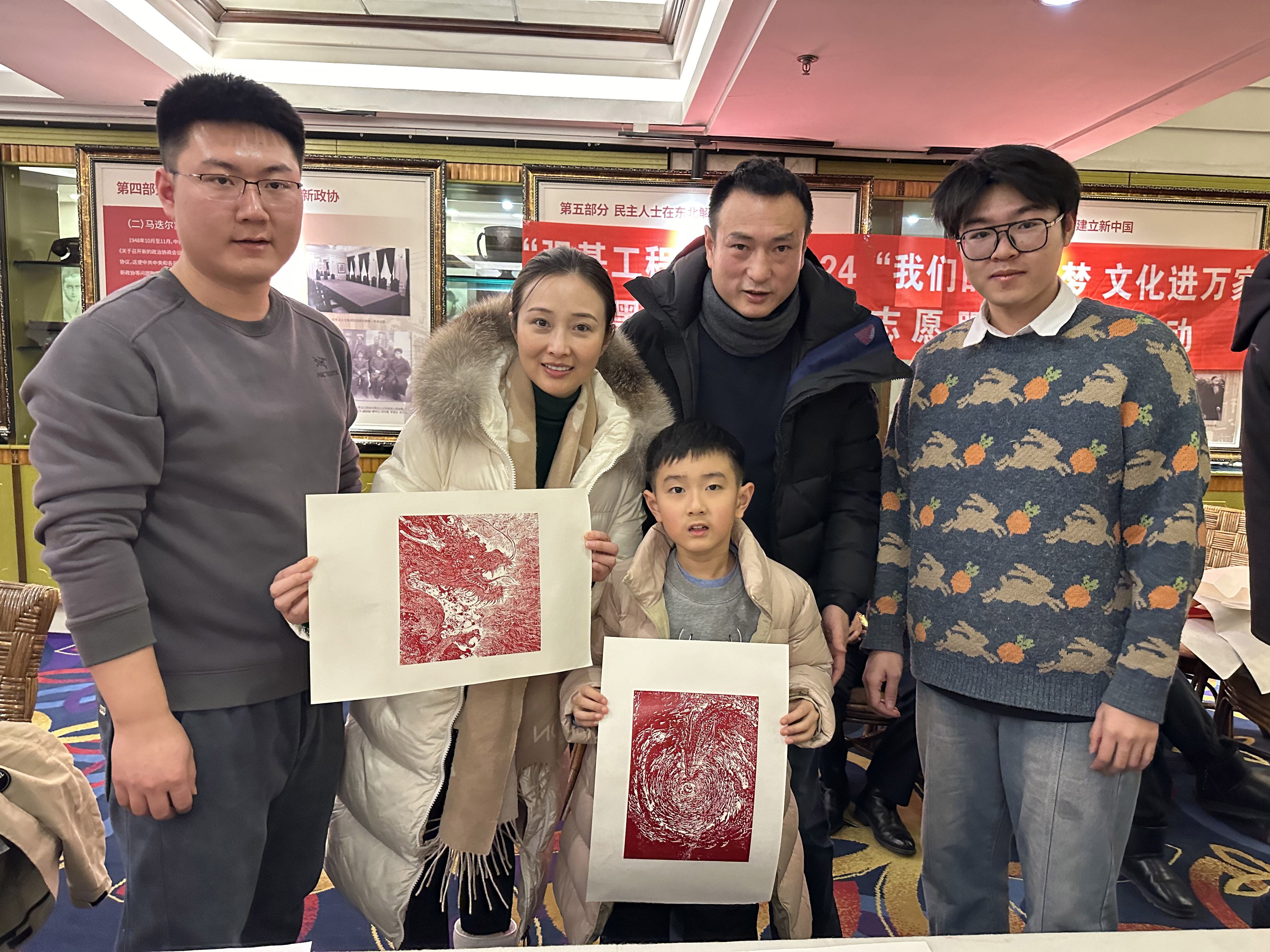 来自成都的一家三口在哈尔滨体验了龙江版画