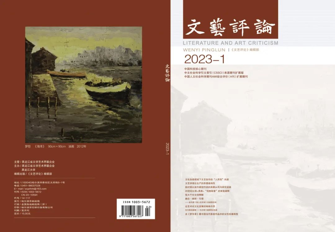 《文艺评论》是我省唯一以开展文艺理论评论为办刊宗旨的学术理论期刊,是推动龙江文艺创作、宣传推广龙江文化的重要平台和媒介,2023年被评为中文社会科学引文索引(CSSCI2023—2024)来源期刊扩展版。《文艺评论》精选龙江书法和美术领域领军人物的代表性精品交替展现于各期四封,纪实性记载龙江艺术发展轨迹。省出版产品审读检测中心对《文艺评论》的封面设计评价是:“期刊装帧设计展现艺术性。运用同位色彩的设计理念,在封面设计上显得厚重大气,在封底又以凝重色彩的油画为基调,呈现出文艺期刊的内涵。设计展示了艺术性、视觉性的和谐统一”。