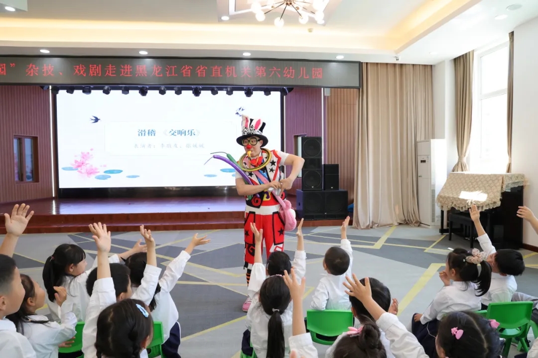 5月24日,为庆祝即将到来的“六一”儿童节,黑龙江省文联副主席、党组成员杨柏婷带领省杂技家协会与省戏剧家协会的文艺志愿者们,为省直机关第六幼儿园送去了一场别开生面的“文化润园”杂技、戏剧演出。