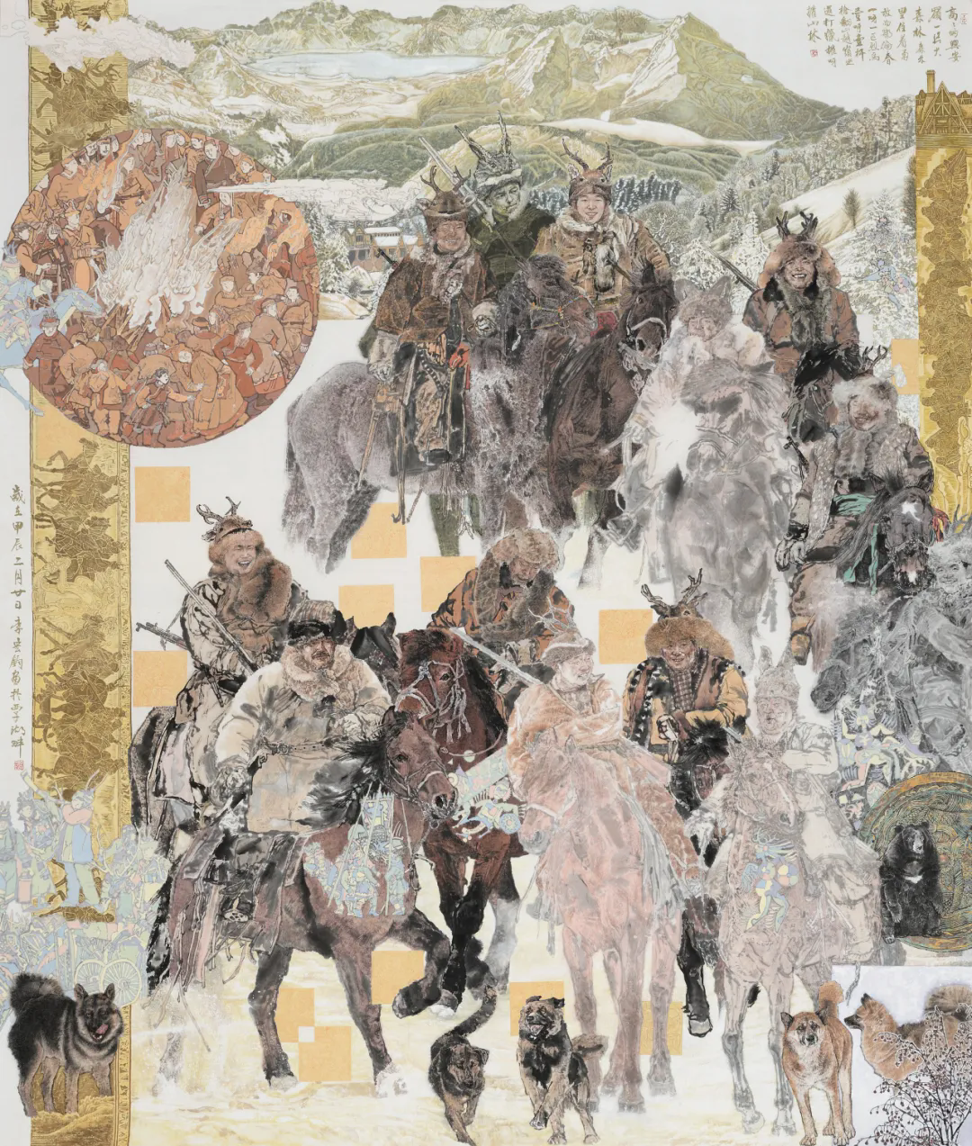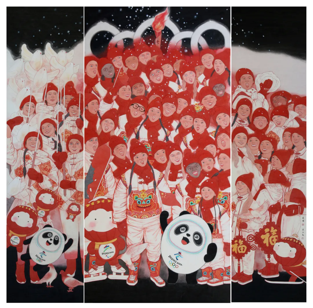 闫景阳《相约亚冬冰城芳华》中国画 200cm×200cm