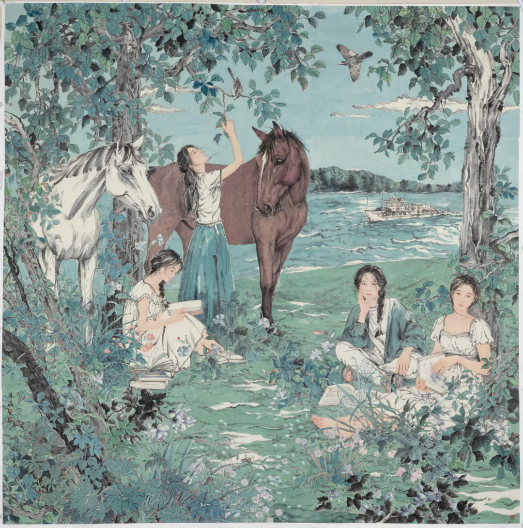 朱晶 《太阳岛上》 中国画 230cm×230cm