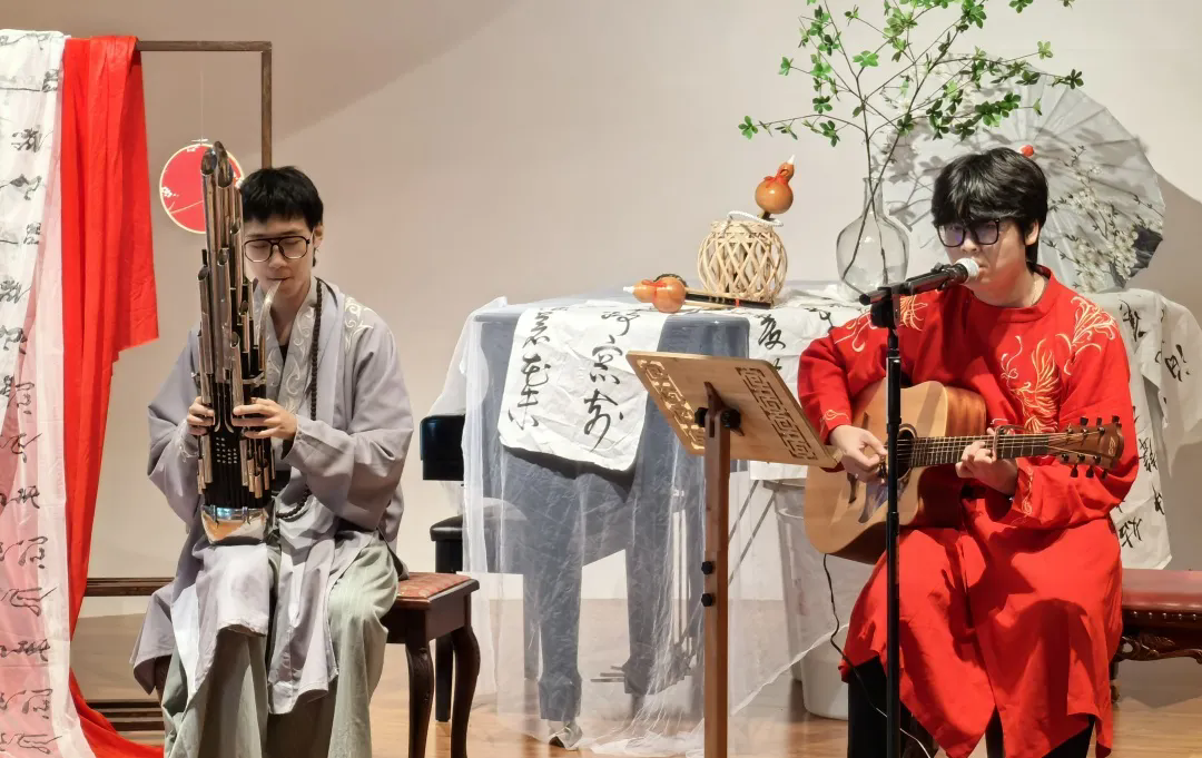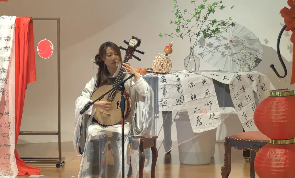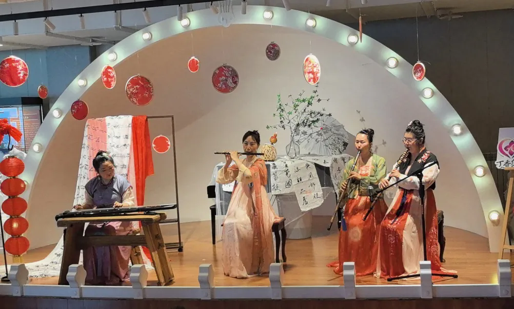 现场的游戏互动版块,围绕七夕文化习俗,开展“飞花令”“投壶”“拼七巧板”“投针验巧”等活动,每一个环节都充满了欢声笑语。在音乐欣赏板块,省音协的文艺志愿者们用琴、笛、阮、笙、箫、吉他等乐器为观众演奏了《春暮花落雨》《青城山下白素贞》《织女心丝》《一生所爱》等乐曲,或浪漫温馨,或热烈奔放,精彩的演奏博得了观众的阵阵掌声。