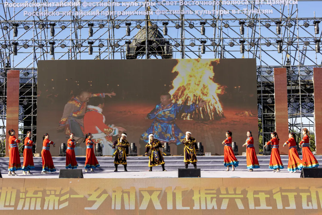 一场别开生面的文艺惠民演出在同江市俄罗斯风情园拉开了帷幕。演出以歌舞《打鱼的哥哥回来了》为序,演员们精彩的演绎瞬间点燃了现场气氛,展现了乡村生活的质朴与美好。随后,整场演出分为“赫乡美”“赫乡情”和“赫乡梦”三大乐章逐一呈现。歌曲《我把太阳迎进祖国》唱出了对祖国的热爱与自豪;《家和万事兴》《父亲的草原母亲的河》《中华全家福》则以温馨的歌声传递了家庭和谐、社会稳定的美好愿景;古筝《象王行》和舞蹈《起舞》展现了中华传统文化的魅力及赫哲人民的活力与热情;大家耳熟能详的歌曲《乌苏里船歌》更是将整场演出推向了高潮,不仅展现了乡村的自然风光,更抒发了人们对美好生活的向往和追求。最后,演出在歌舞《花开中国》中圆满落幕,寓意着乡村文化如同绚烂的花朵,在祖国大地上绽放。