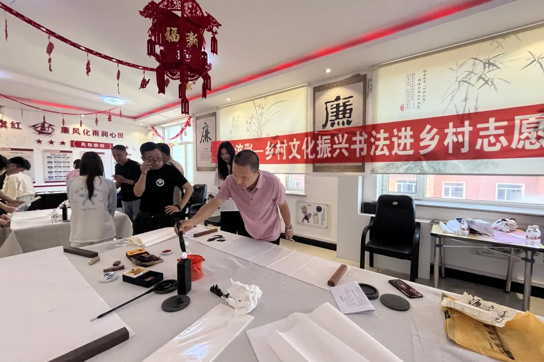 演出结束后,还在同江市同江镇举办了书法交流和送书法进乡镇活动。书法家们挥毫泼墨,以笔会友,不仅交流了书法技艺,更传递了文化的温度与力量。一幅幅寓意吉祥、充满正能量的书法作品被赠予村民,为乡村增添了浓厚的文化氛围,激发了村民对传统文化的兴趣与热爱。