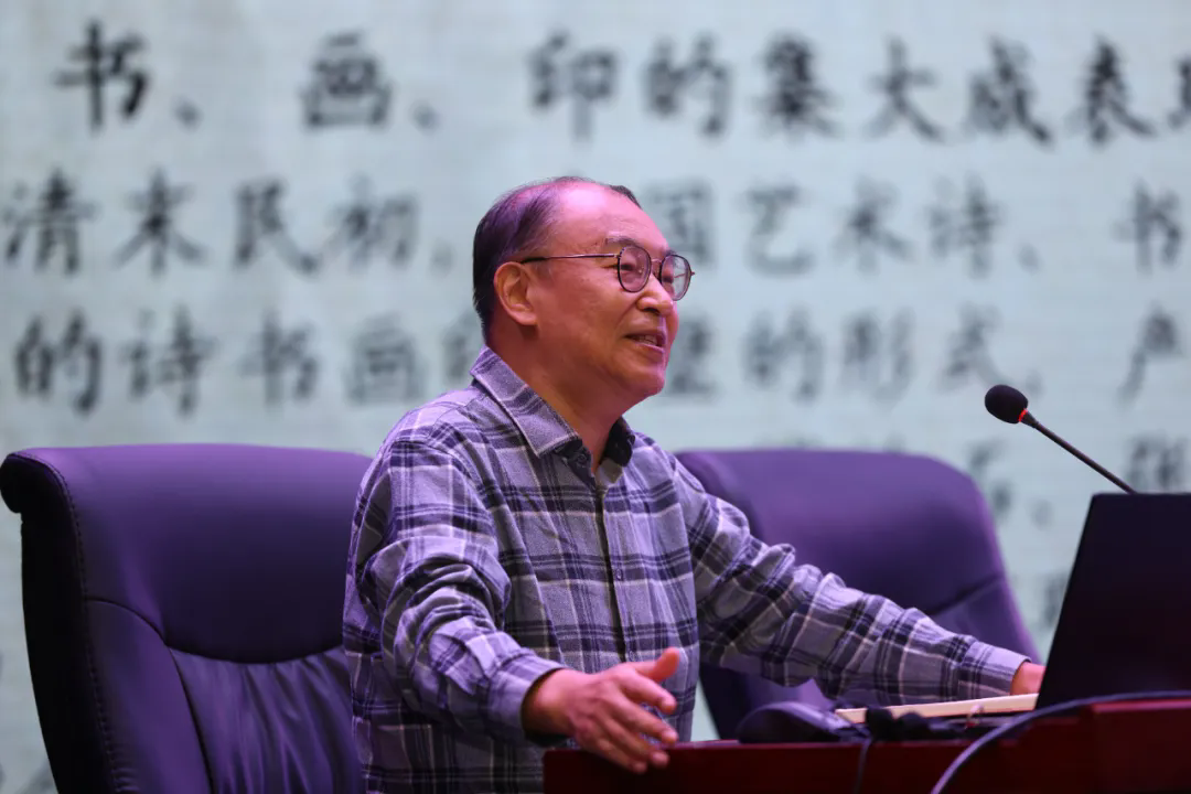 西泠印社副秘书长、中国书协理事、中国书协篆刻委员会副主任范正红以《关于中国艺术创作的融汇情结——诗书画印》为题,从诗、书、画、印的艺术融汇作为中国文化特征体现讲起,详细阐释了诗、书、画、印的特点,深入剖析了其内在联系和相互影响,系统讲解了如何进行融汇。通过生动的案例、精彩的讲解,让听众领略到这些艺术形式在创作过程中的相互借鉴、相互渗透和相互提升,加深了对中国艺术创作融汇情结的理解与认识。