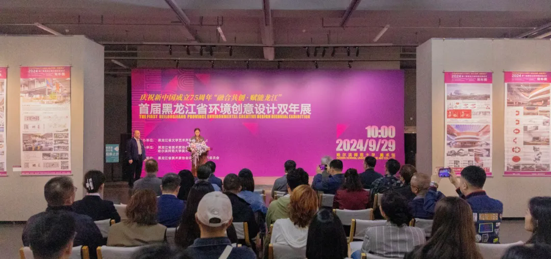 9月29日,由黑龙江省文学艺术界联合会主办,黑龙江省美术家协会、哈尔滨师范大学美术学院承办,黑龙江省美术家协会环境设计艺术委员会协办的庆祝新中国成立75周年——“融合共创·赋能龙江”首届环境创意设计双年展在哈尔滨师范大学美术馆开幕。