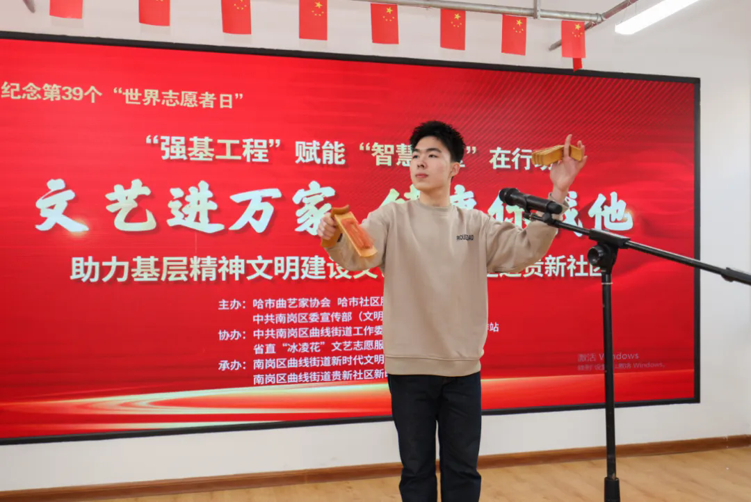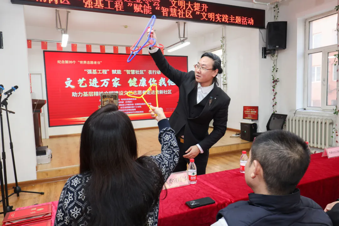 演出后,文艺志愿者们还开展了快板、朗诵、魔术培训,将传统艺术带到百姓身边,让社区群众切身感受传统艺术的魅力。哈尔滨市曲协还分别向曲线街道新时代文明实践所和贵新社区新时代文明实践站选派了“文艺志愿辅导员”,开展长期结对帮扶。哈尔滨市曲协“强基工程”文艺志愿服务共建单位联席会议也于同日举行,文艺志愿者和社区工作者共同探索文艺志愿服务新模式,为人民群众提供更加优质的精神文化食粮,为基层精神文明建设添砖加瓦、贡献力量。